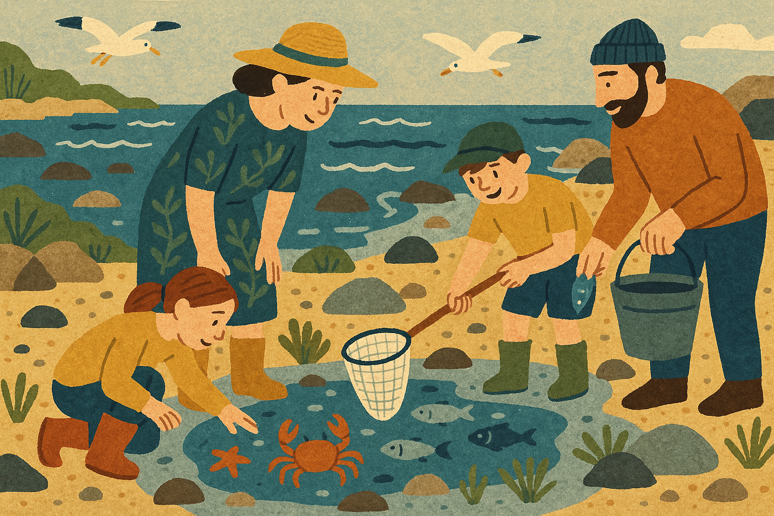 磯の潮だまりを探索し、貝やカニ、魚を観察。タッチングプールで生物に触れながら専門家の解説を聞く。弁当付き。
